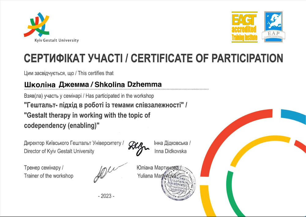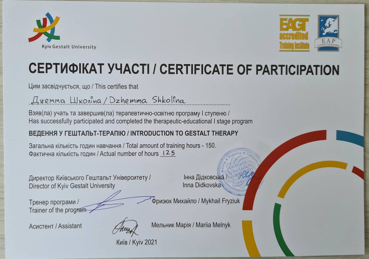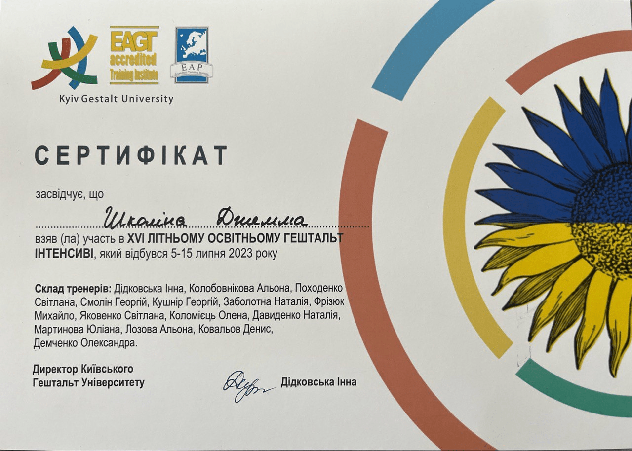 Я практикуючий психолог у гештальт підході.