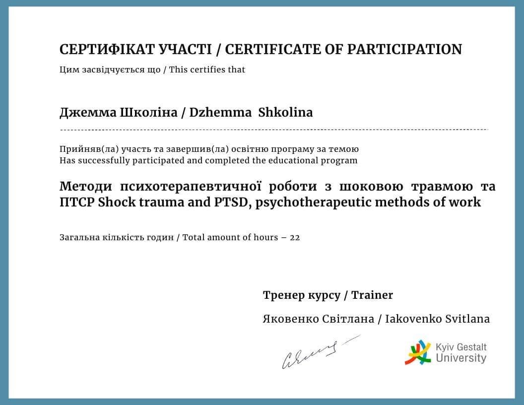 "Шокова травма та ПТСР у гештальт підході"